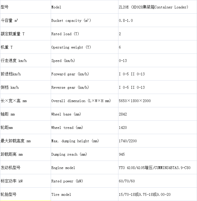 ZL20E (XD928) 2.0噸集裝箱裝載機